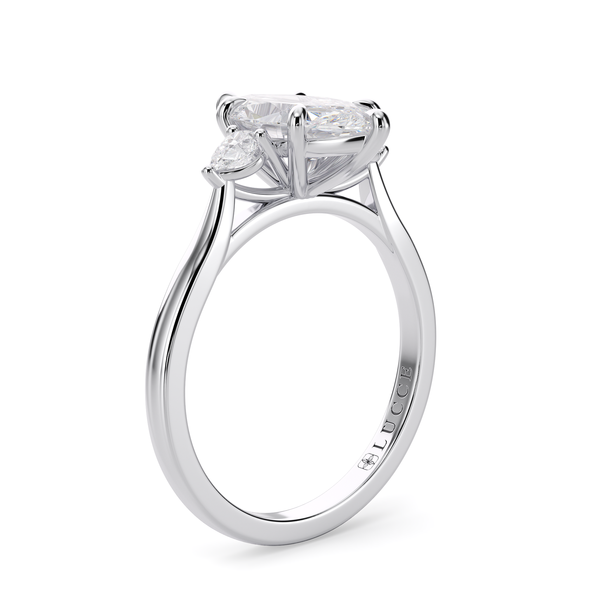 This forever piece is Lucce’s modern take on the timeless three-stone ring. This marquise cut engagement ring's trio of diamonds blooms like a bouquet, each stone representing the love you’ve shared in the past, share in the present, and will share in the future. It’s like saying I love you, not just once, but as a promise you’ll keep whispering for a lifetime.