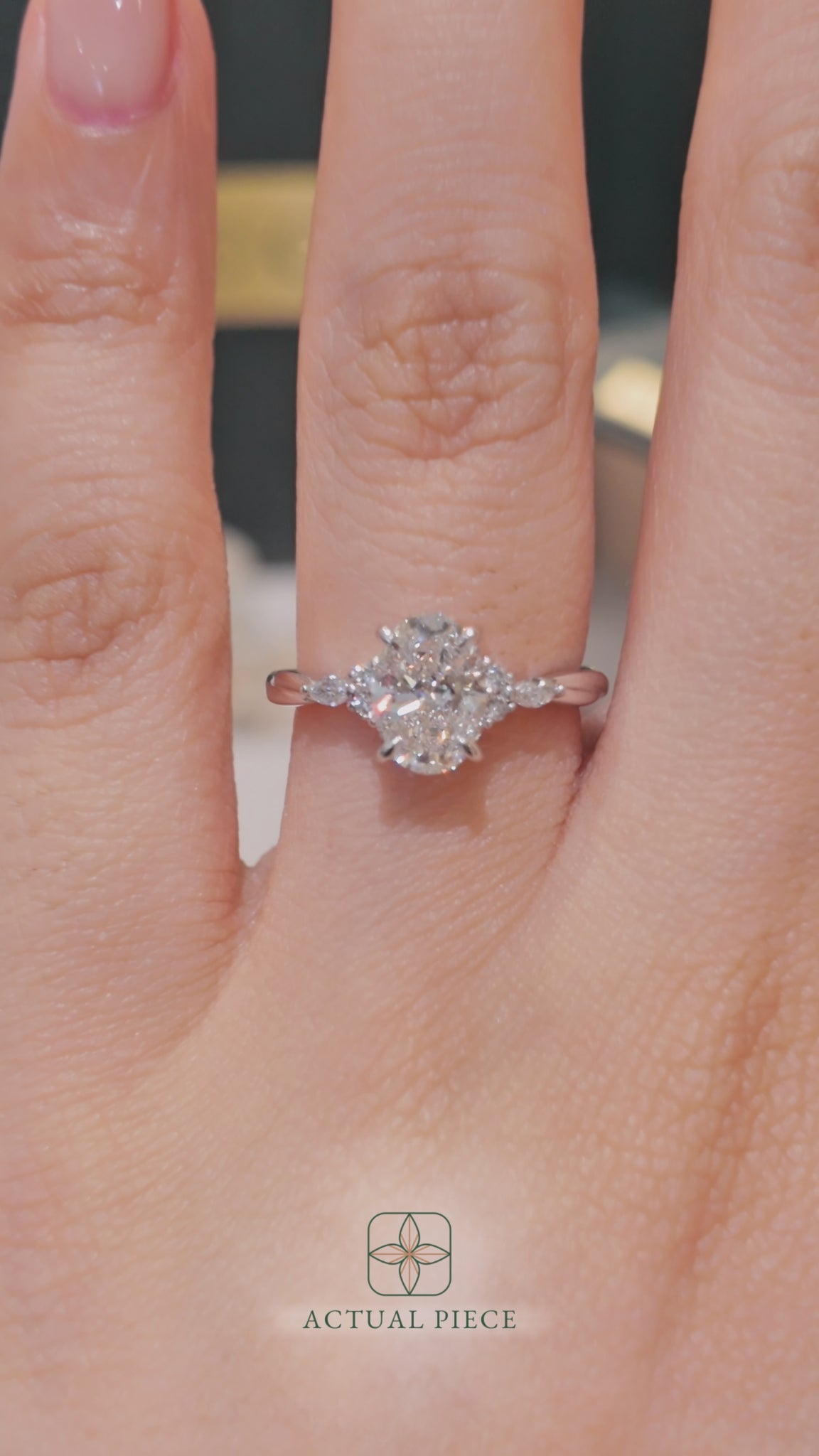 This forever piece features a low-profile setting, delicate cluster accents, and a graceful twisting band. Set with seven stones, this diamond engagement ring symbolizes that she is your perfect one, the missing piece that completes you. The twisting band speaks of your infinite love, a vow to stand beside her through every twist, turn, and chapter life brings.
