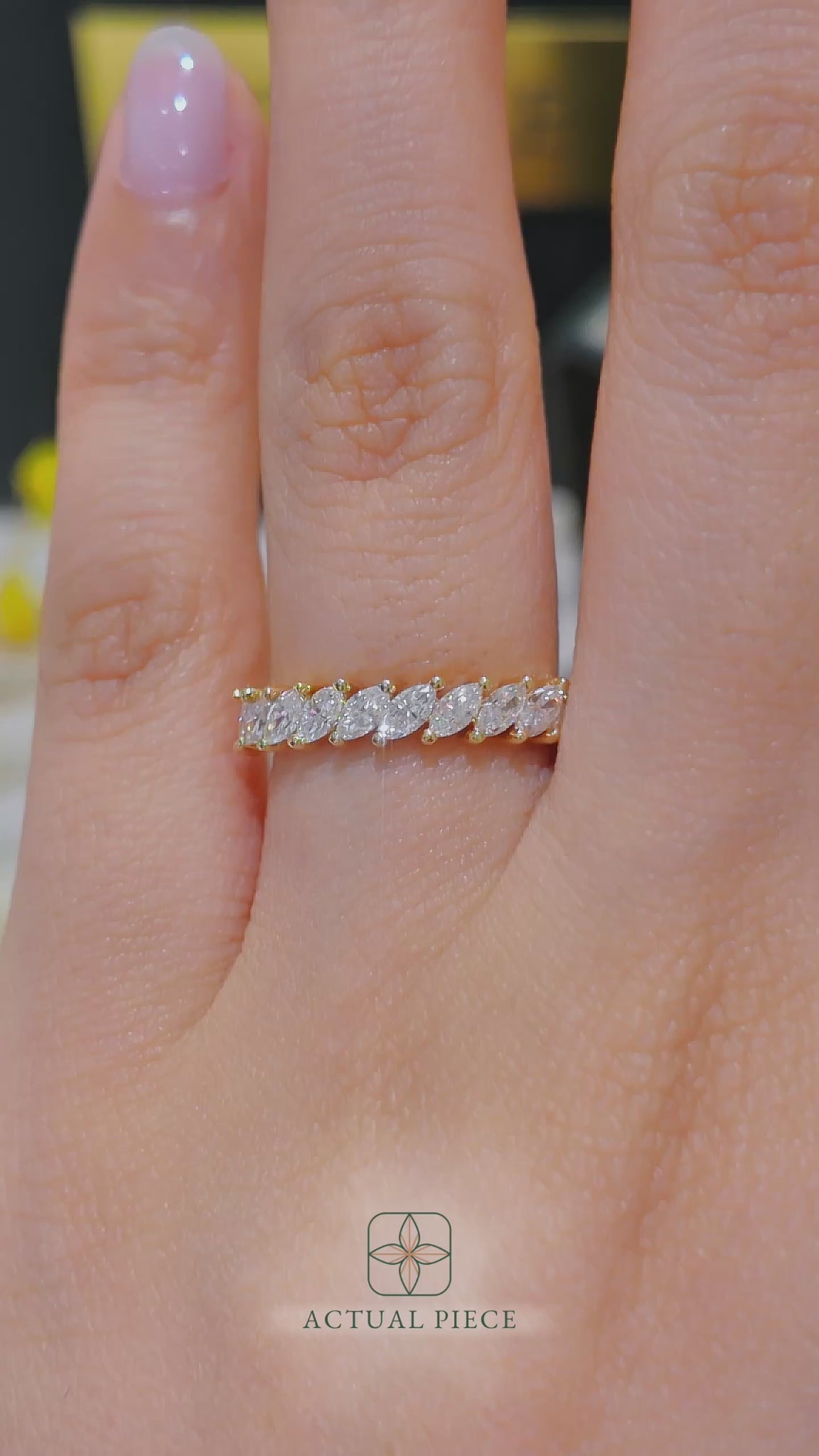 The Constance Lia wedding ring design features a half eternity style with a row of marquise natural or lab grown diamonds. It is one of the best loved wedding bands in the Philippines. Perfect for the woman who is one of a kind.
