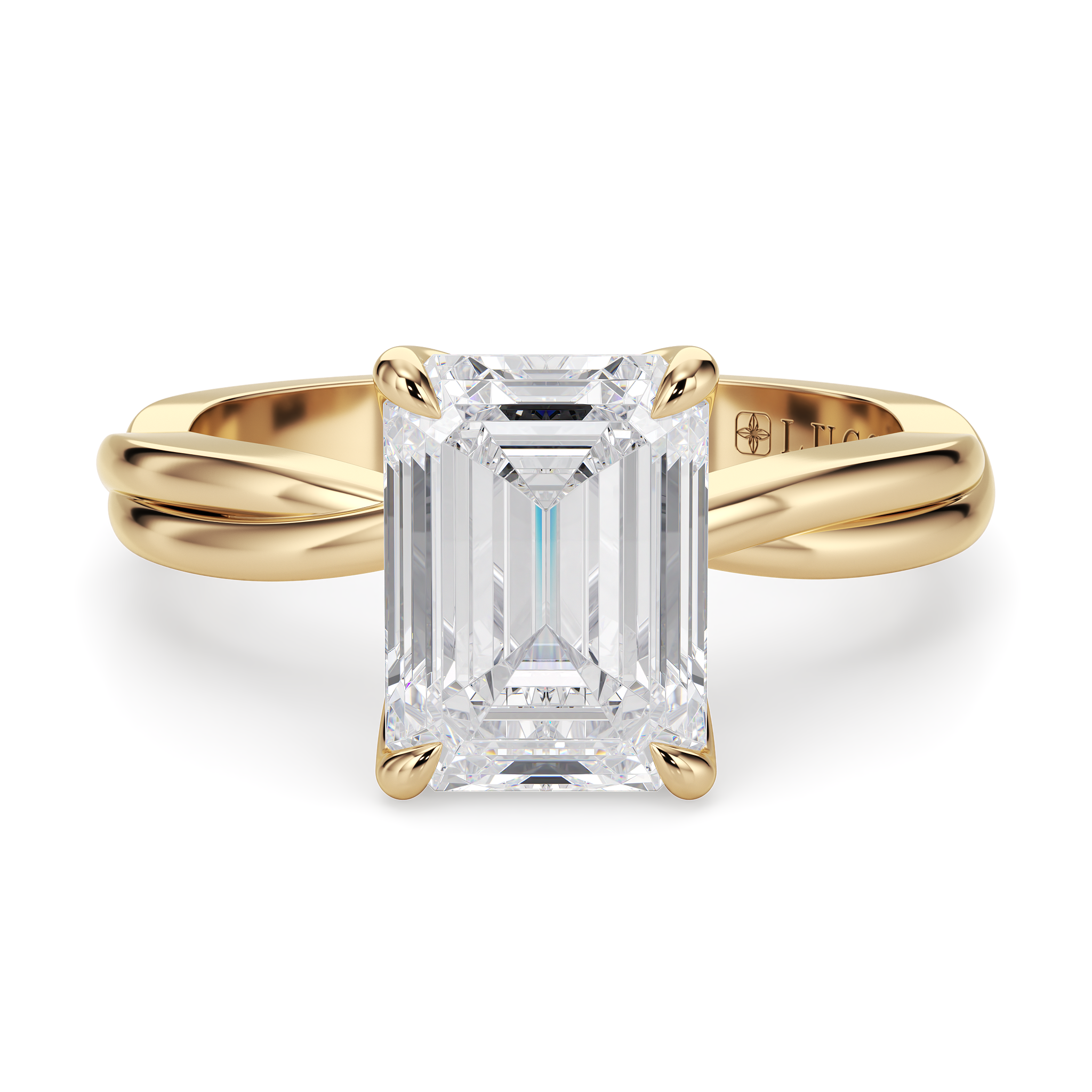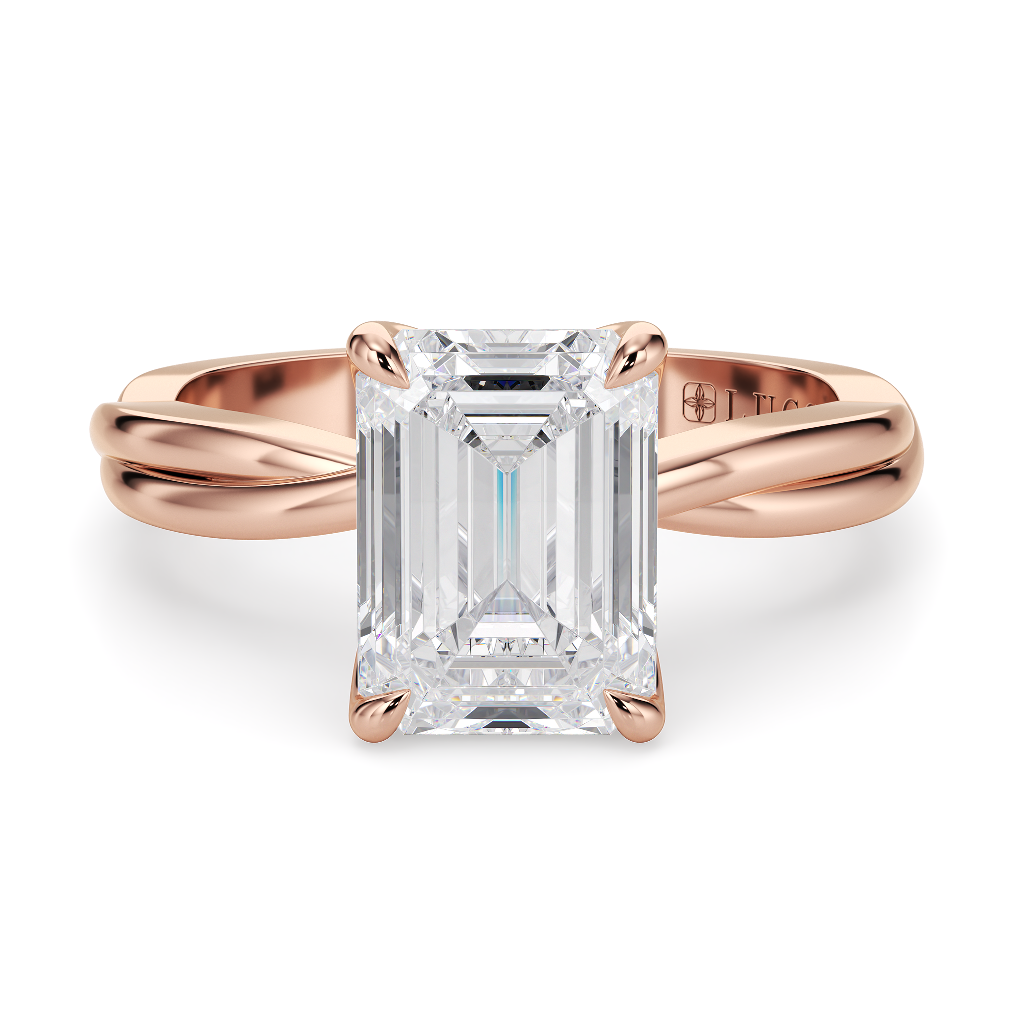 This forever piece features a twisting band and Lucce’s signature petal prongs. This emerald cut diamond engagement ring's vine-like band symbolizes two lives intertwined by love, forming an infinity that speaks of a bond that is unbreakable. Like a delicate flower found in vines, it reflects how you found her, beautiful, one-of-a-kind, and meant to be.