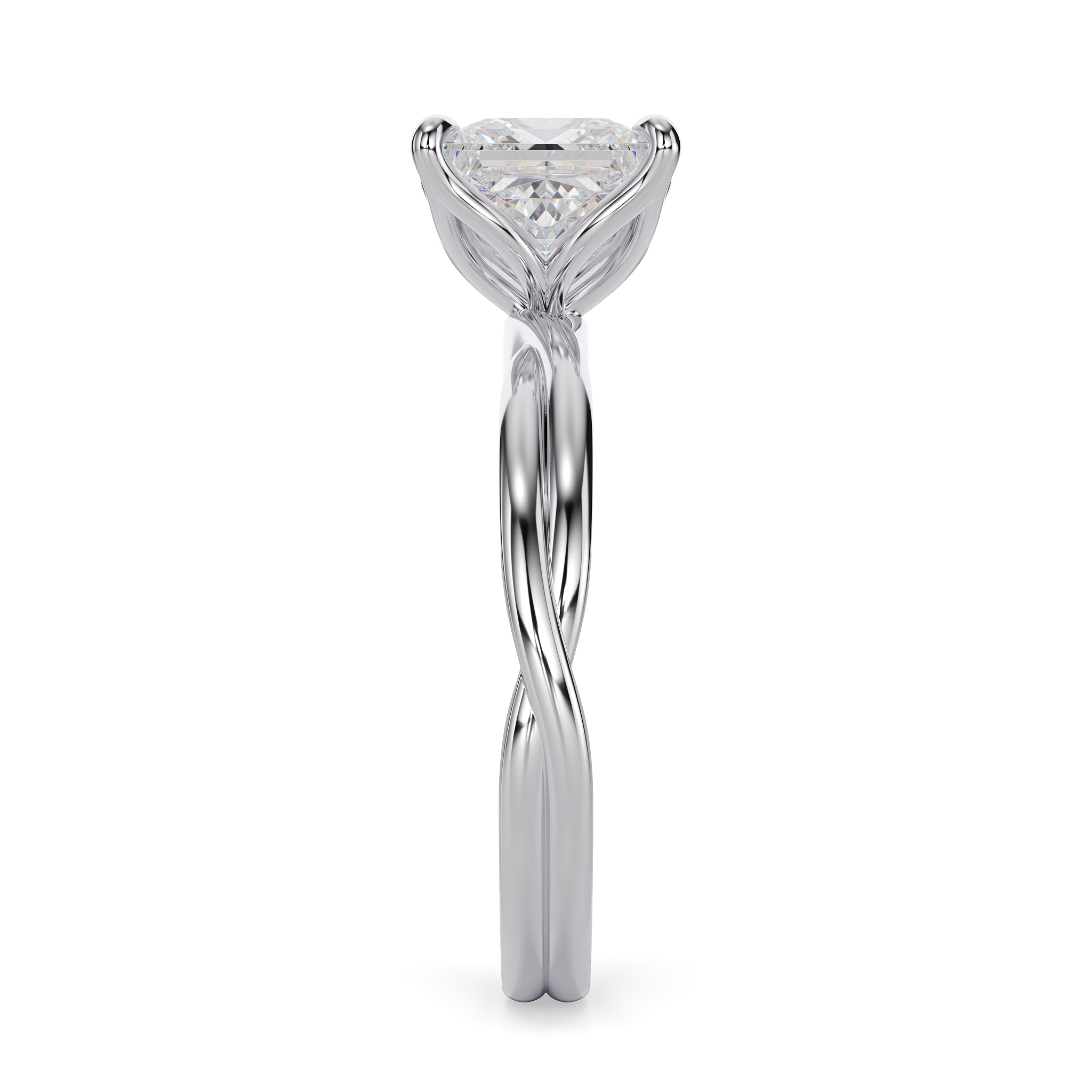 This forever piece features a twisting band and Lucce’s signature petal prongs. This princess cut diamond engagement ring's vine-like band symbolizes two lives intertwined by love, forming an infinity that speaks of a bond that is unbreakable. Like a delicate flower found in vines, it reflects how you found her, beautiful, one-of-a-kind, and meant to be.