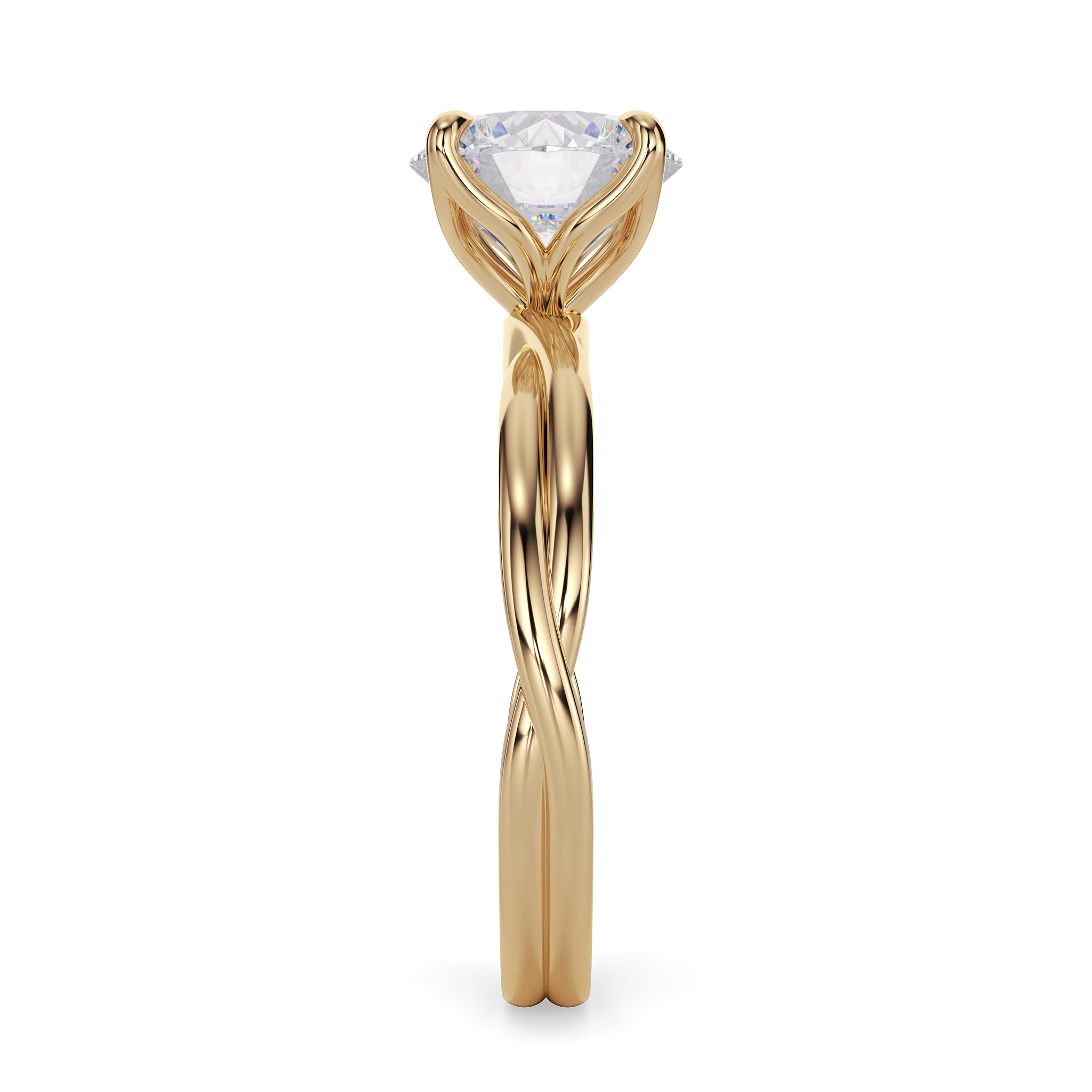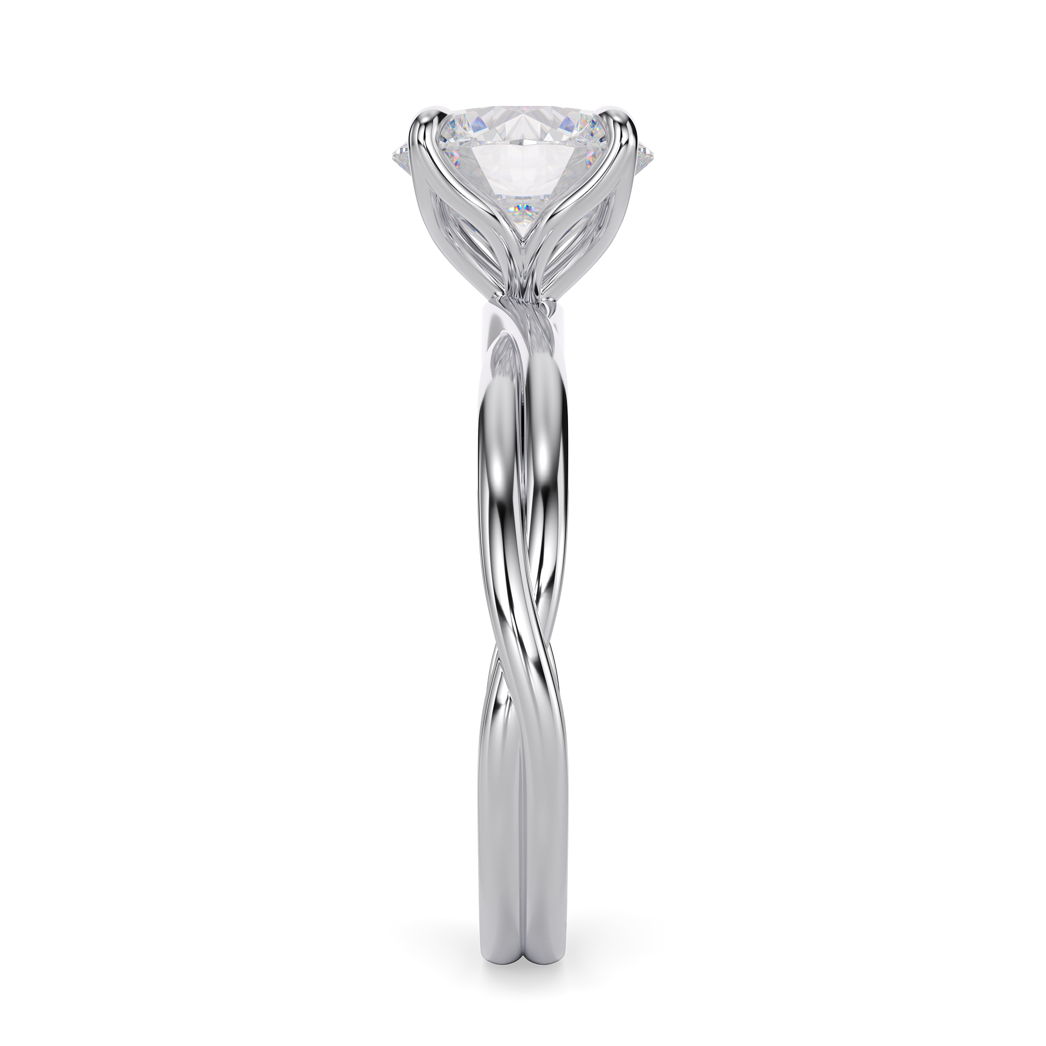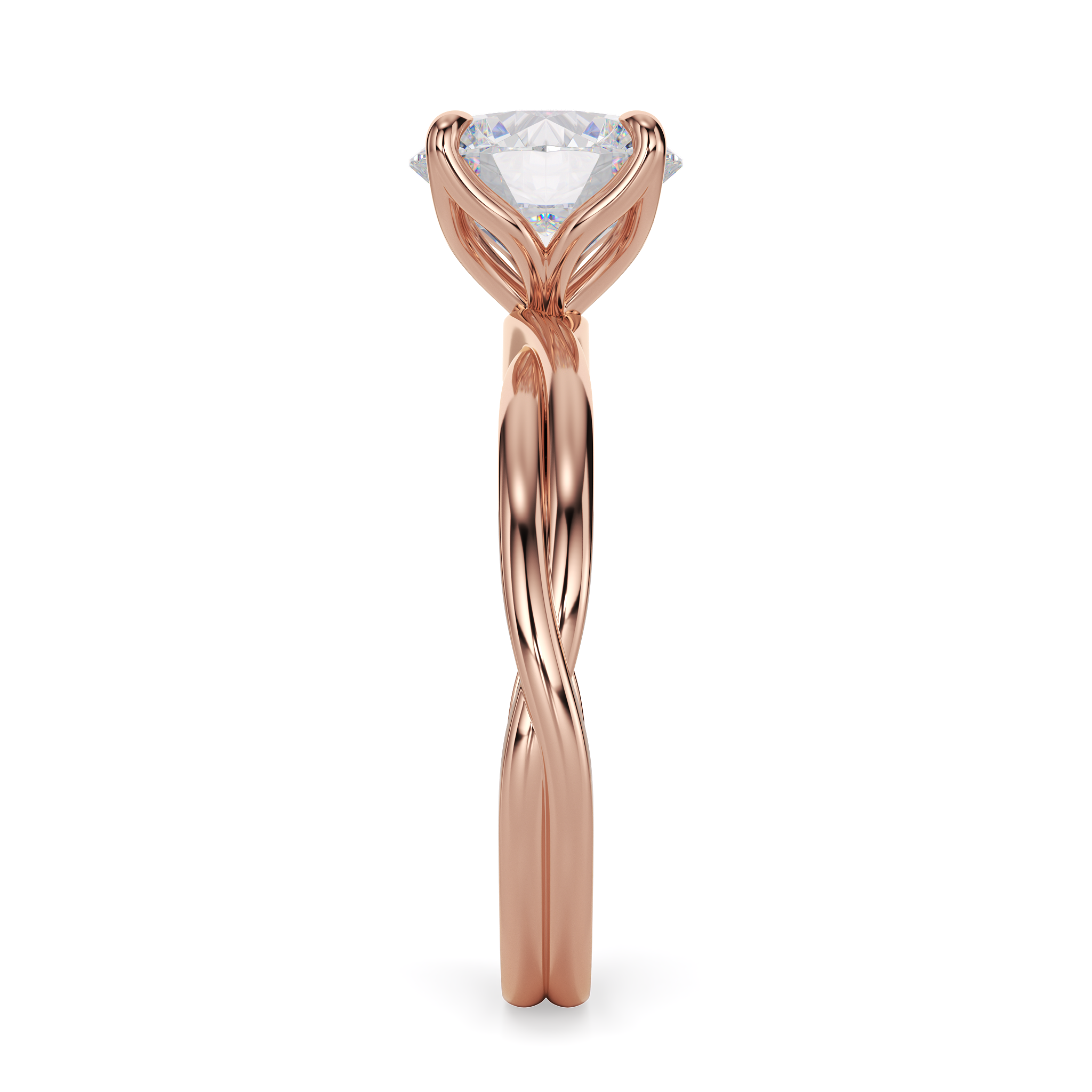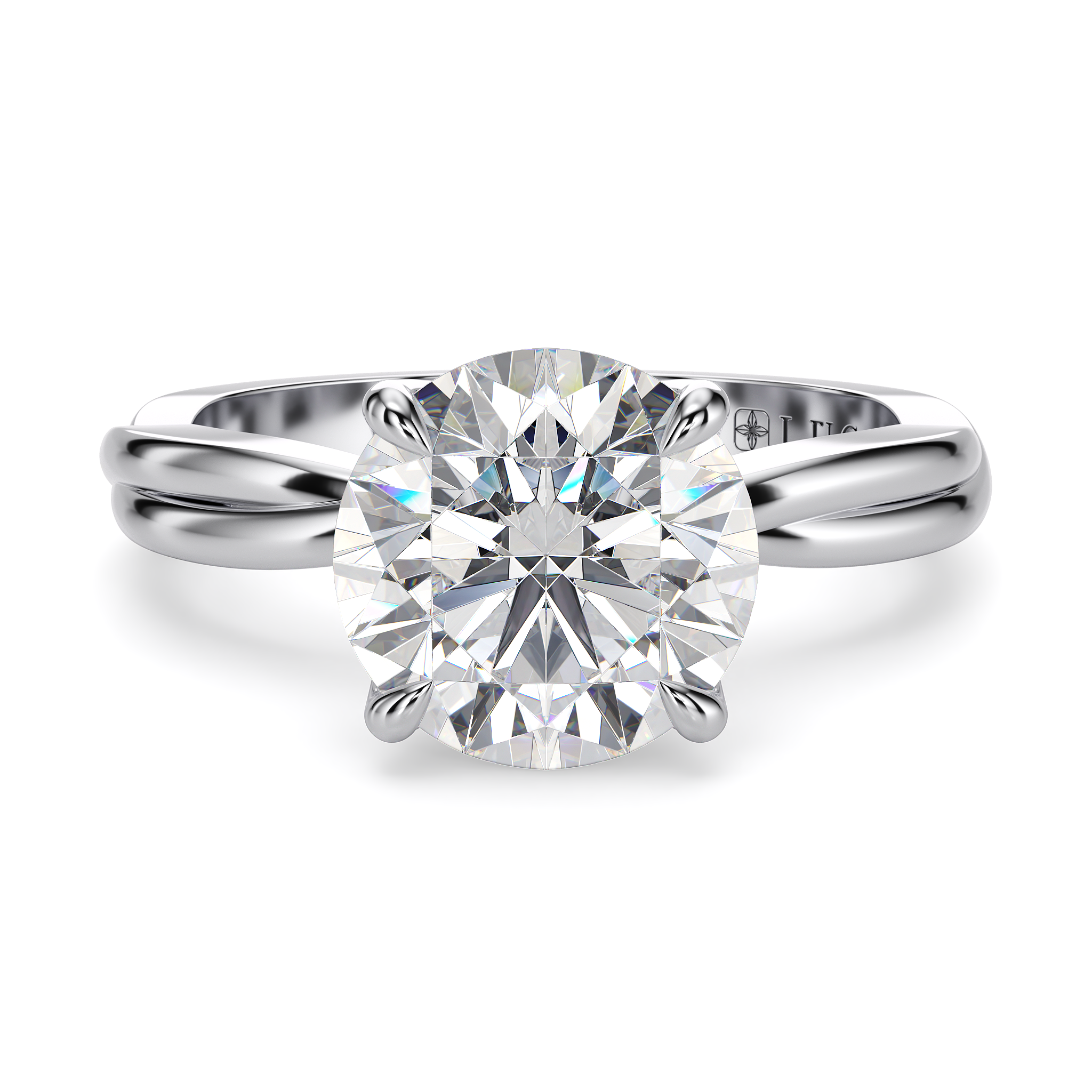This forever piece features a twisting band and Lucce’s signature petal prongs. This round cut diamond engagement ring's vine-like band symbolizes two lives intertwined by love, forming an infinity that speaks of a bond that is unbreakable. Like a delicate flower found in vines, it reflects how you found her, beautiful, one-of-a-kind, and meant to be.