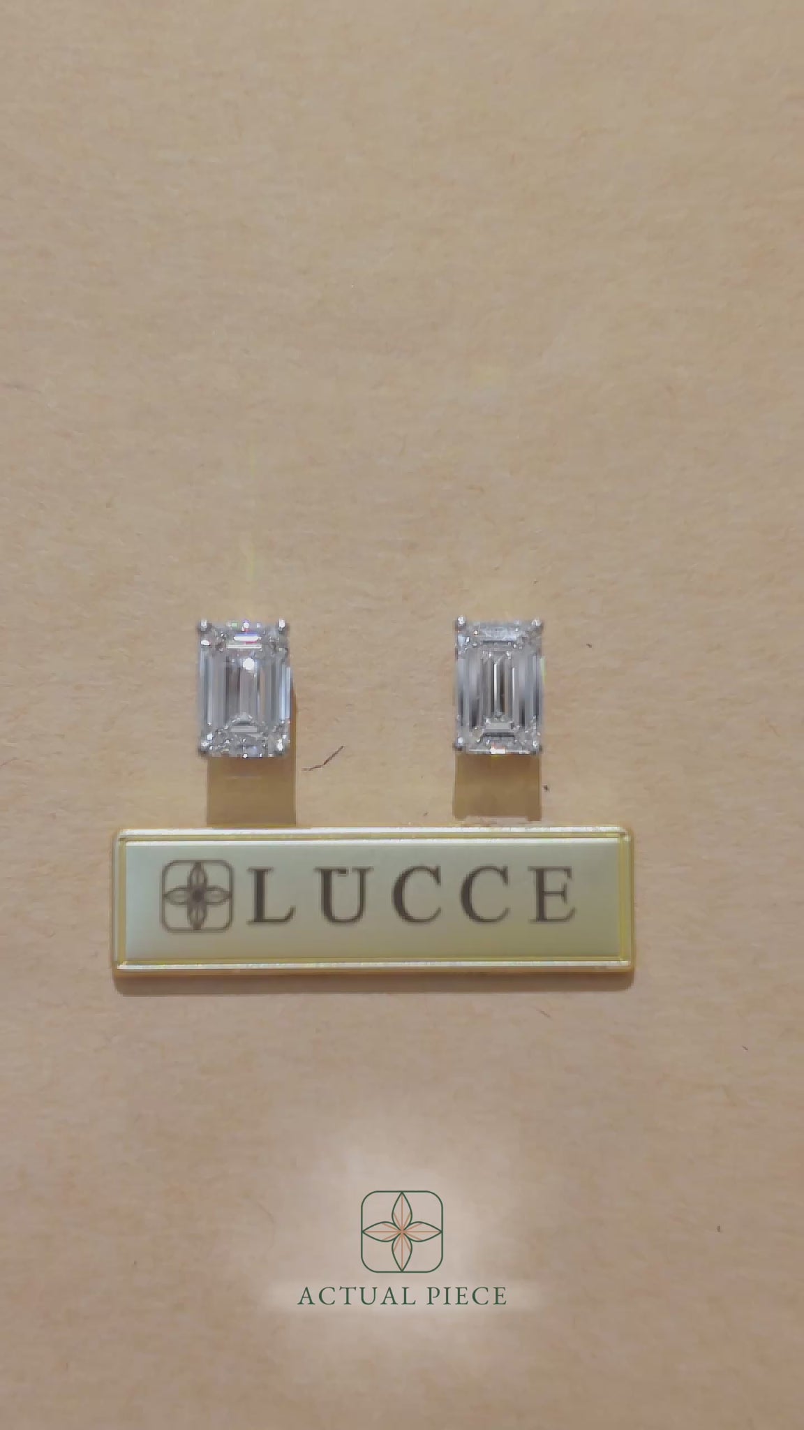 Lucce's enchanting Kaela Diamond Stud with Hidden Halo Design in Emerald cut, the perfect blend of elegance and sophistication. These stunning earrings are meticulously crafted to capture hearts and illuminate any occasion with their dazzling brilliance.