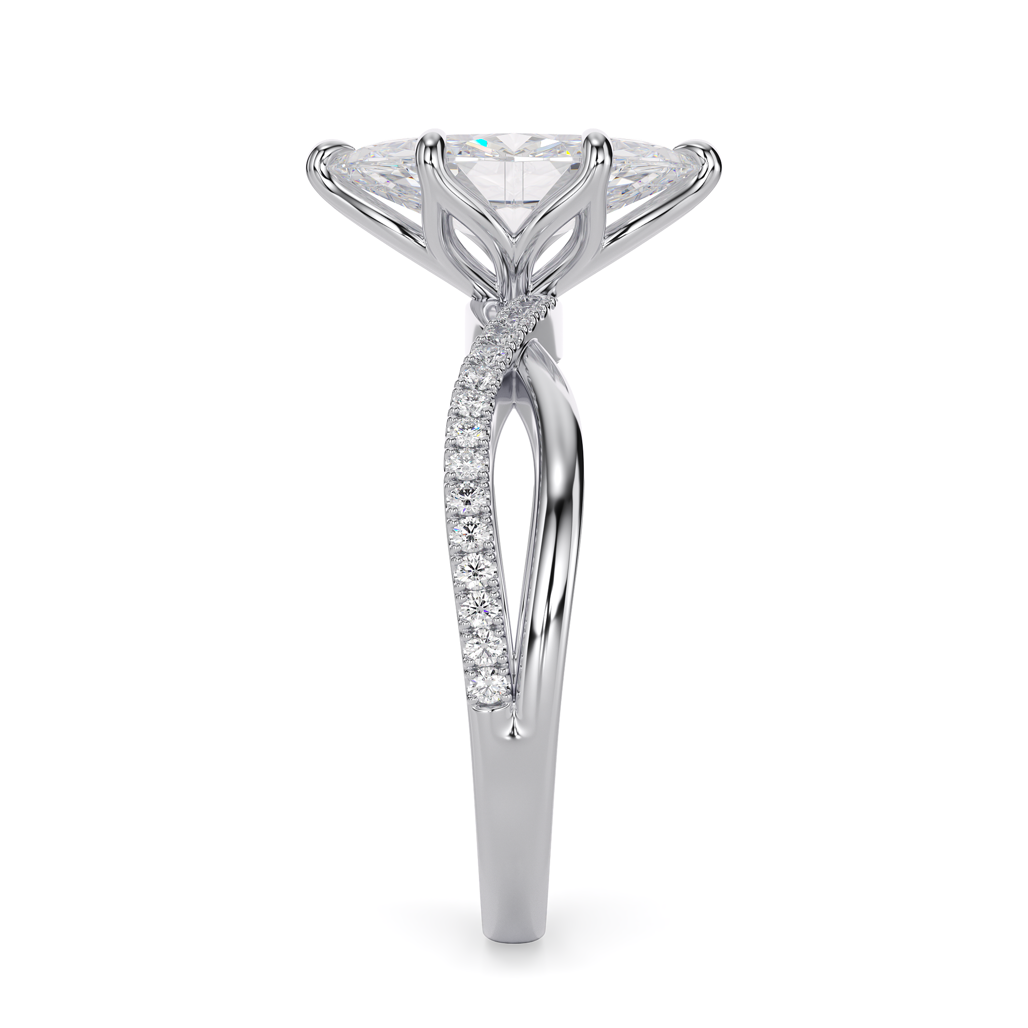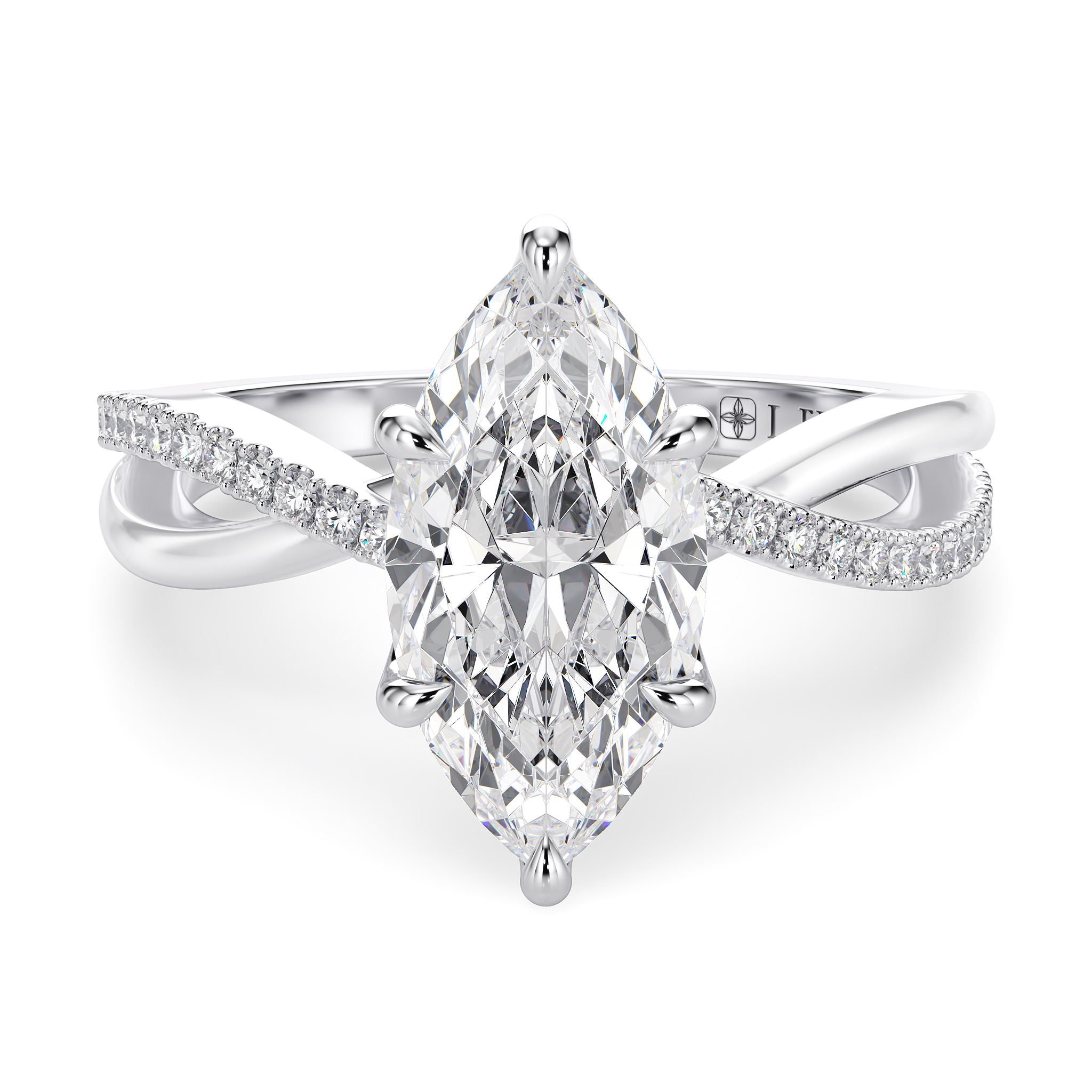 This forever piece features a twisting accented band and Lucce’s signature petal prongs. This marquise cut diamond engagement ring's twisting band symbolizes two lives intertwined by love, forming an infinity that speaks of a bond that is eternal and unbreakable. It is a promise to stay through all of life’s twists, turns, and everything in between.