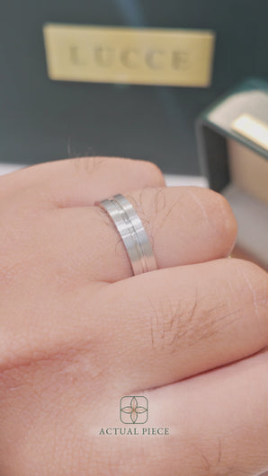 Understated yet distinctive, Lucce's Marrio flat court wedding ring is elevated by a single groove inlay—a small detail with big impact. The inner slight comfort fit provides a smooth, comfortable feel, while the flat outer band gives a modern, sleek profile. A meaningful ring that speaks volumes through simplicity.