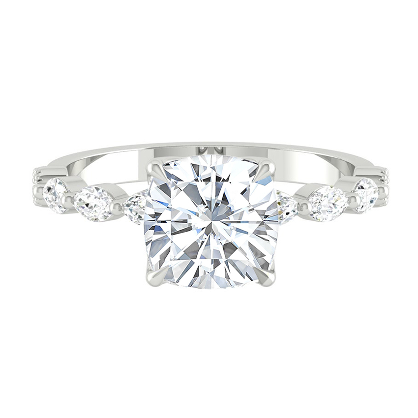 Cushion Diamond Engagement Ring with Marquise and Round Accent Band with Petal Prong in Gold or Platinum, Manila Philippines