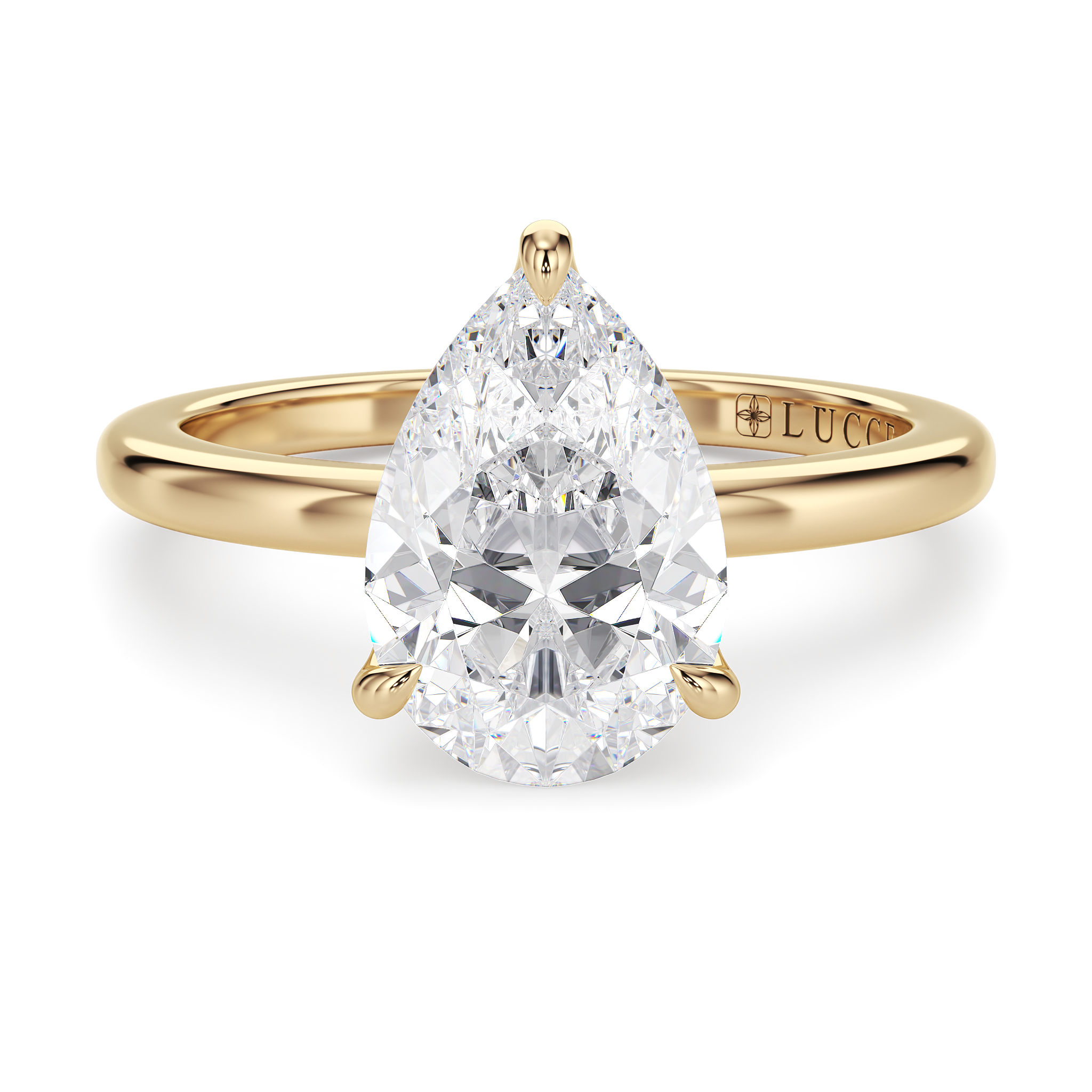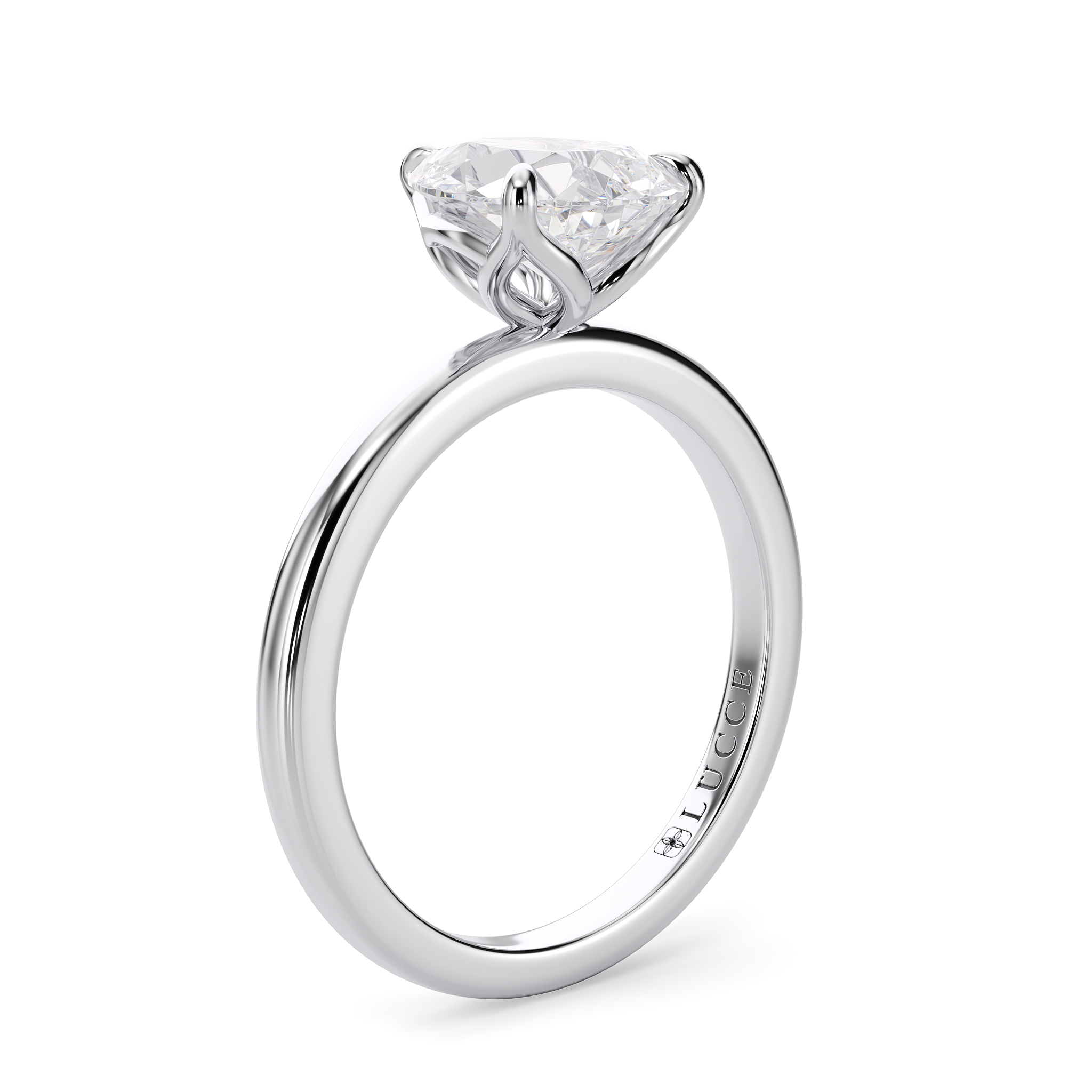 This forever piece features delicate petal prongs and a timeless solitaire band, a design that finds its beauty in simplicity, much like the love you share: quiet, genuine, and deeply content. This pear cut diamond engagement ring's solitaire band is a symbol of devotion, a reminder that she is the only one your heart desires. Like a tulip in full bloom, she is graceful in her simplicity, yet endlessly captivating.