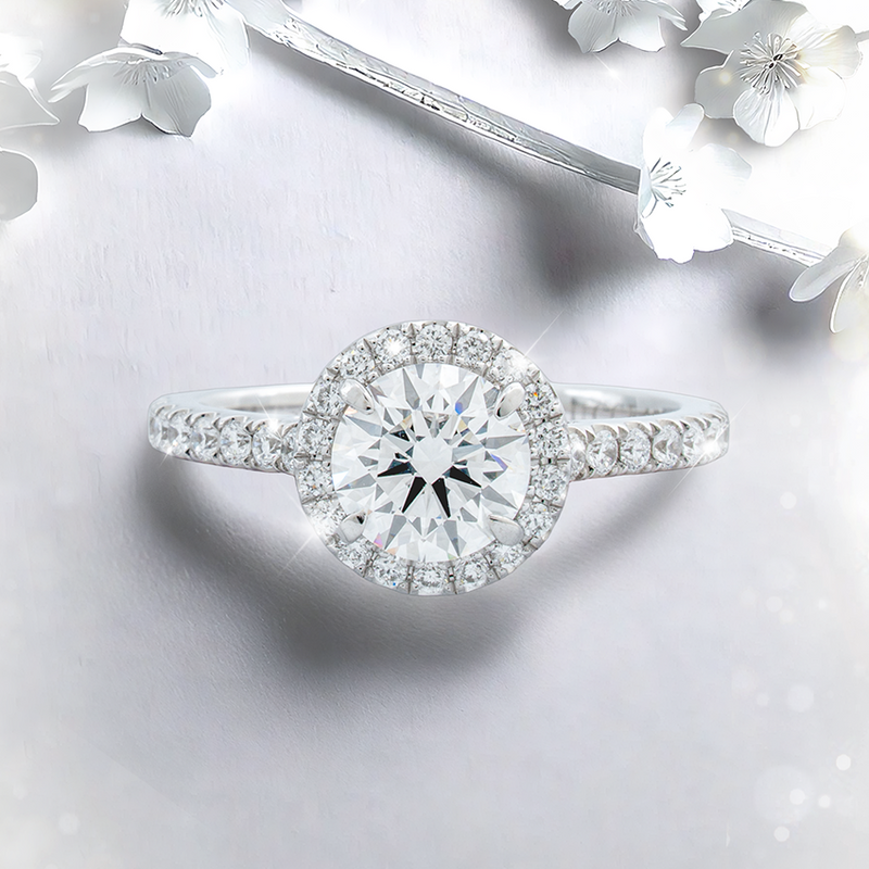 This forever piece features a halo pavé setting with Lucce’s signature tapered bridge. This round cut diamond engagement ring's timeless design speaks of a love without end, just like the halo itself. And like the halo of an angel, it reflects how she’s brought light into your life, made you better, and inspired you to be the best partner you can be for her, always.