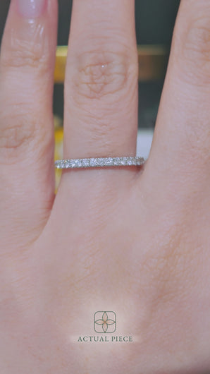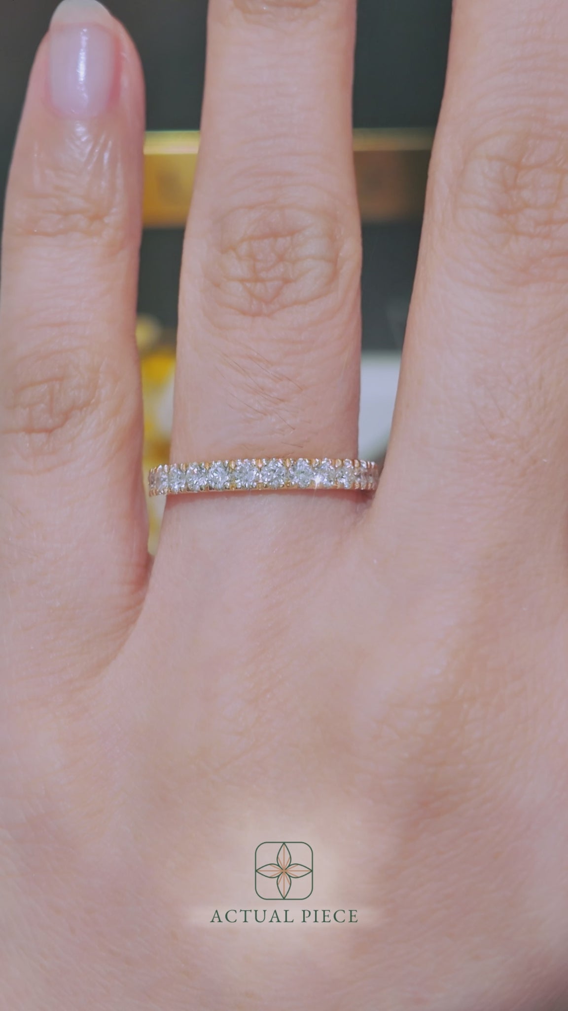 This classic wedding ring features a glittering row of pavé accents across the top half of the band and serves as the perfect complement to many engagement ring styles.