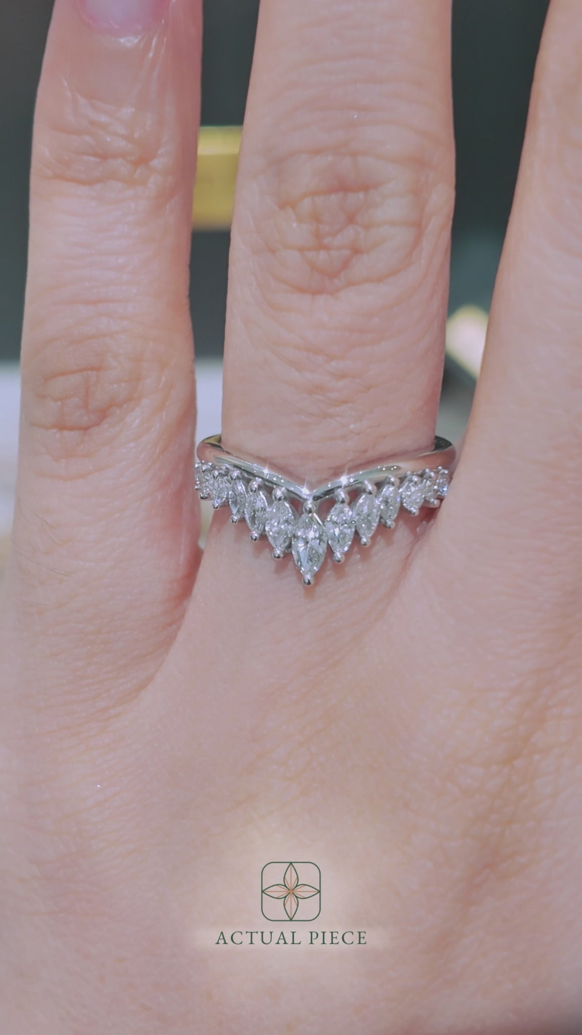 The Constance Chevron wedding ring design features a contoured style with a row of marquise natural or lab grown diamonds. It is one of the best loved wedding bands in the Philippines. Perfect for the woman who is one of a kind.