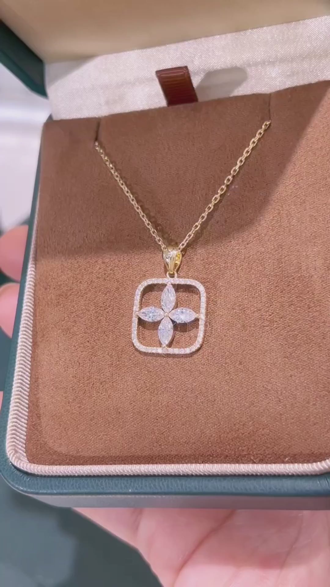 Showcase your love's unwavering commitment with the Constance Diamond Necklace. This timeless beauty features a flower with four marquise cut diamonds, surrounded by a bejeweled frame. It is perfectly made for a love that is constant with Lucce's iconic emblem.