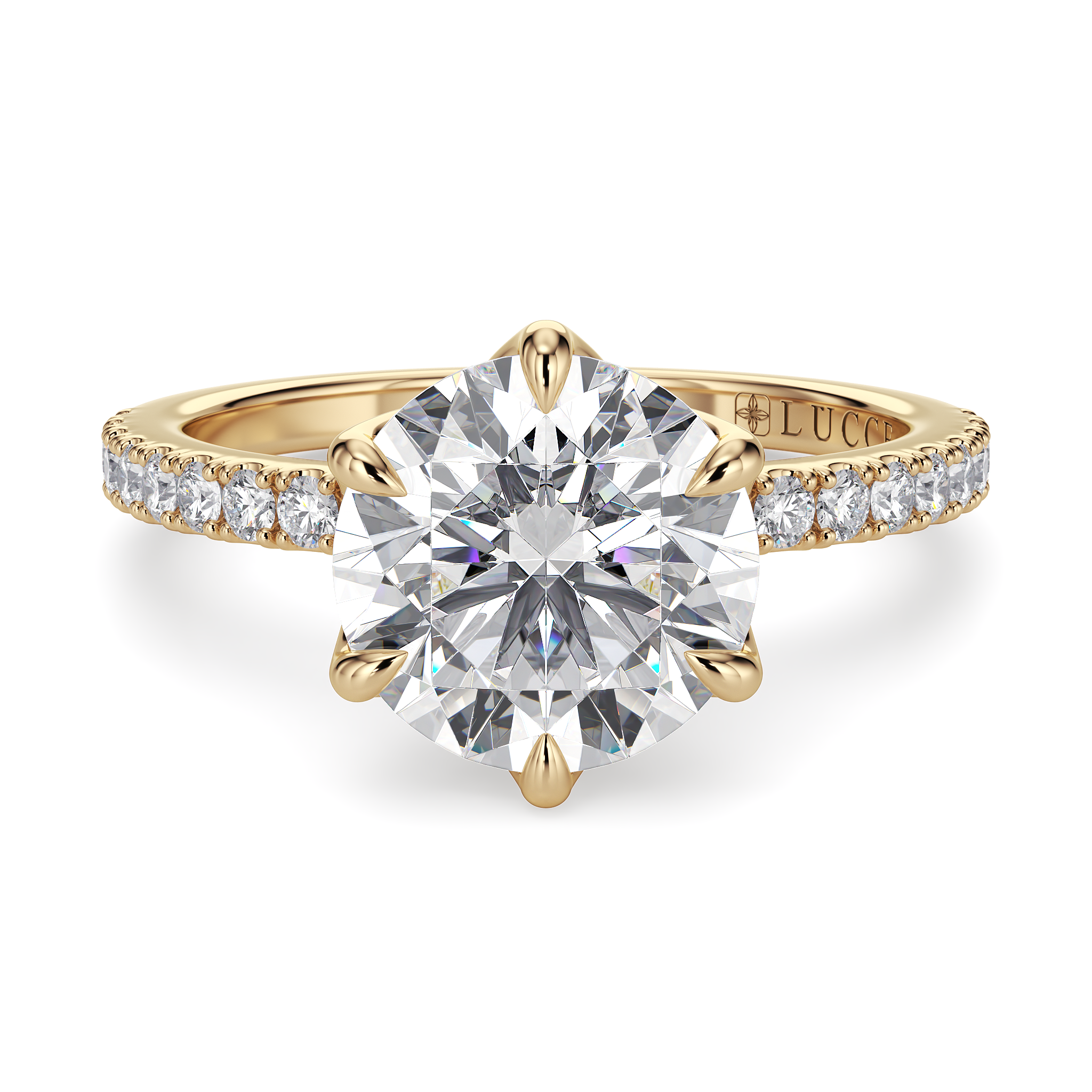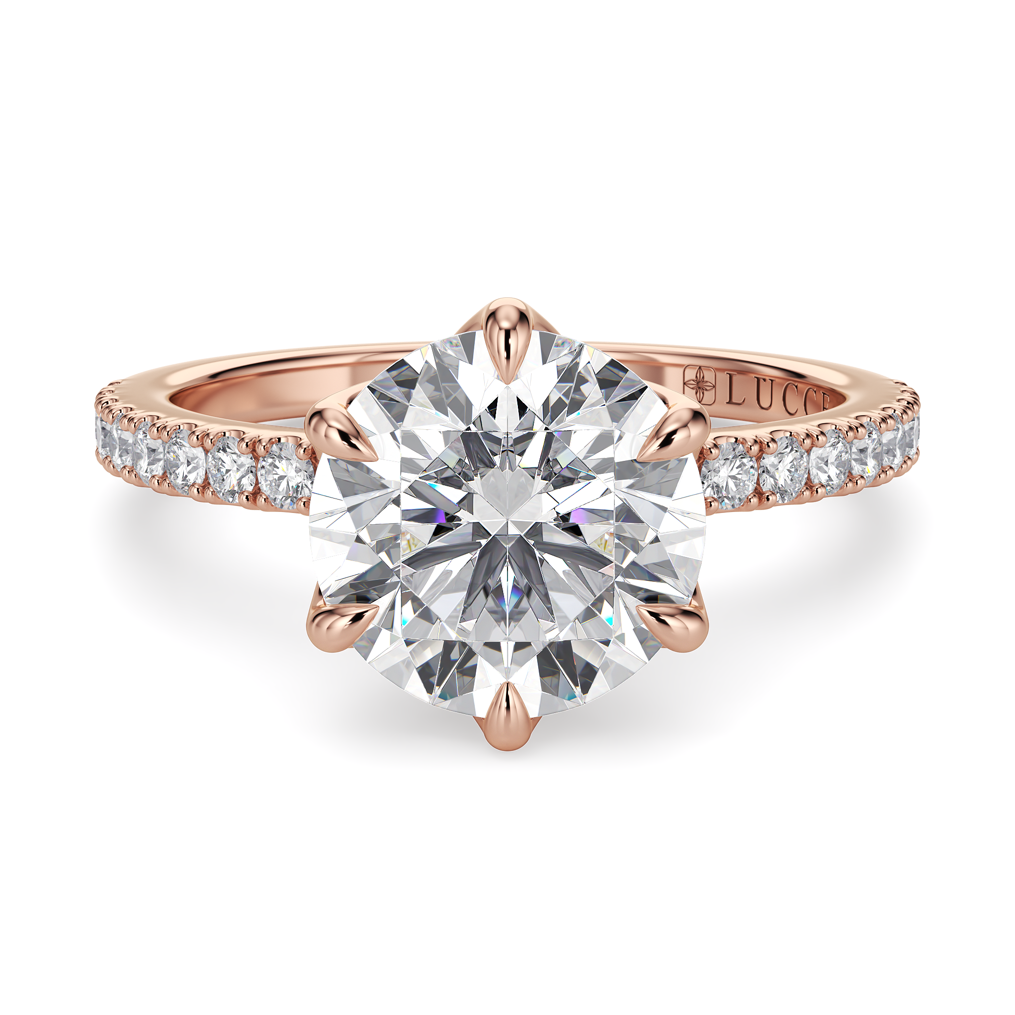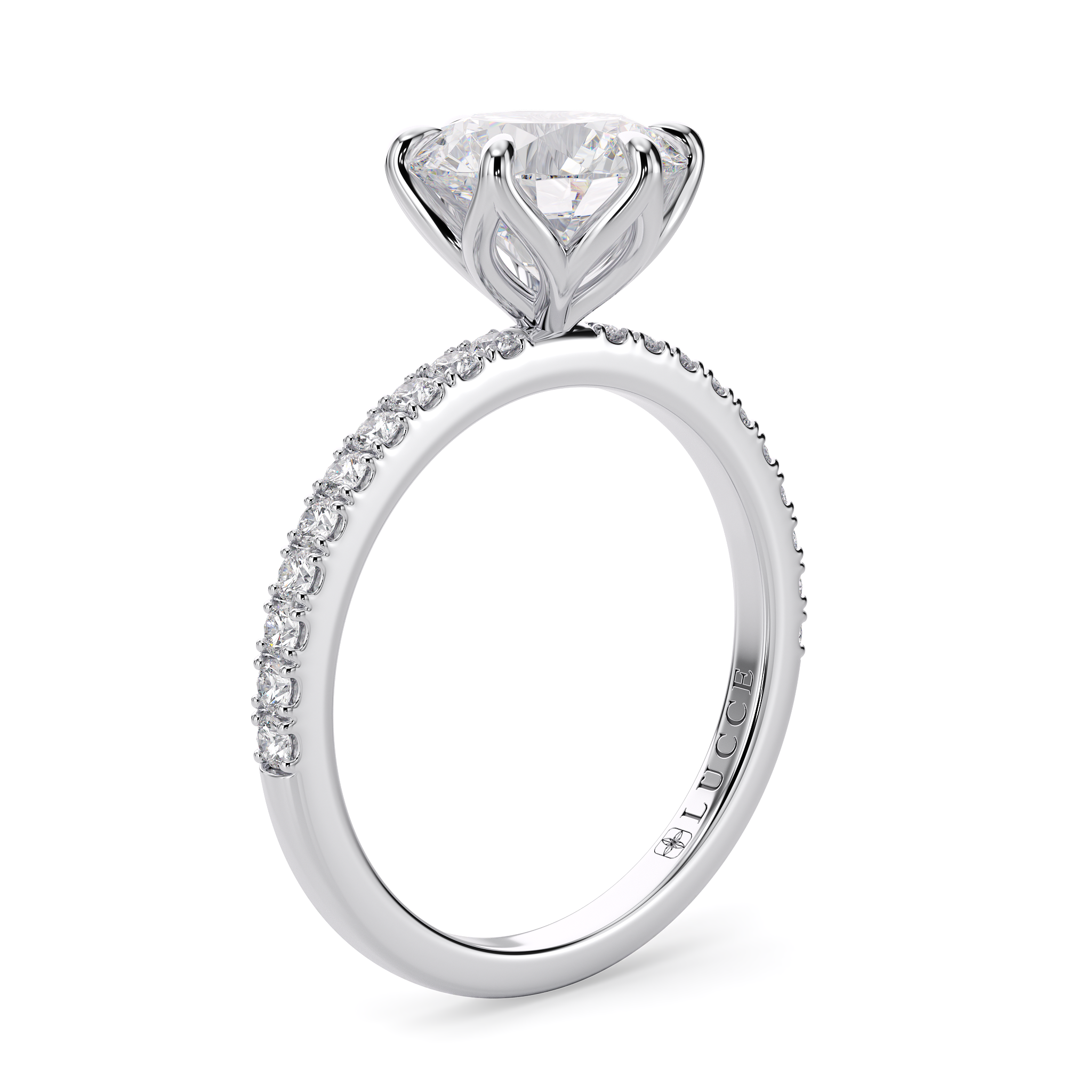 A pavé of brilliant stones directs your gaze to the unfurling flower at the center of the ring. This is for the woman who exhibits creativity and elegance.
