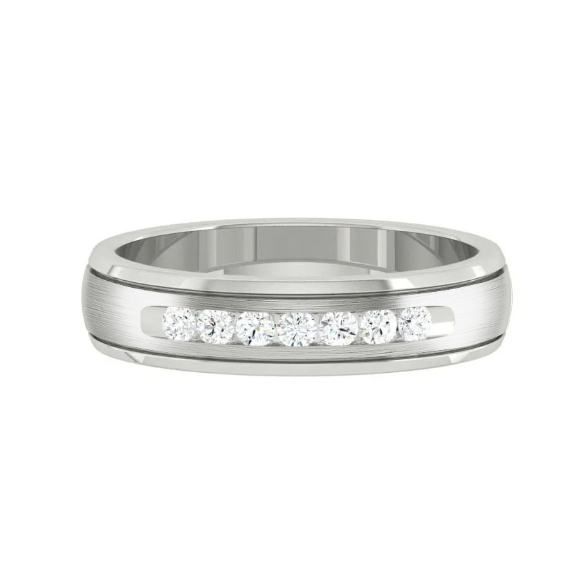 Lucce's Michael, A male wedding band with a brushed finish featuring seven diamonds at its core. Crafted for the modern man who embraces strength and sophistication, this band is a symbol of resilience and refinement.