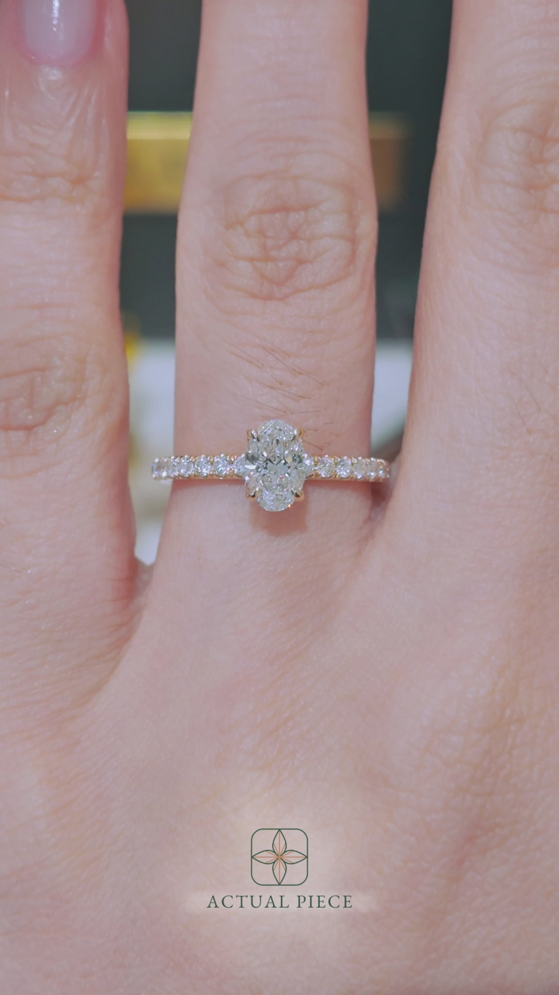 This forever piece features delicate petal prongs and a classic pavé band, a design as graceful and captivating as she is. Like her, its beauty isn’t loud; it blooms softly, effortlessly, like a flower kissed by morning light. This oval cut diamond engagement ring's pavé accents shimmer gently, just like the true and steady love you’ve nurtured together.