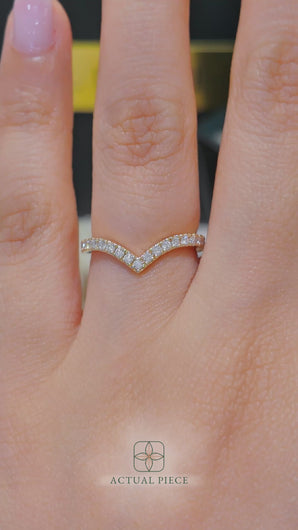 This chevron pavé accentuates your brilliant engagement ring. While this band is best meant to complement, on its own it declares the height and depth of your love and the wonderful adventure ahead.