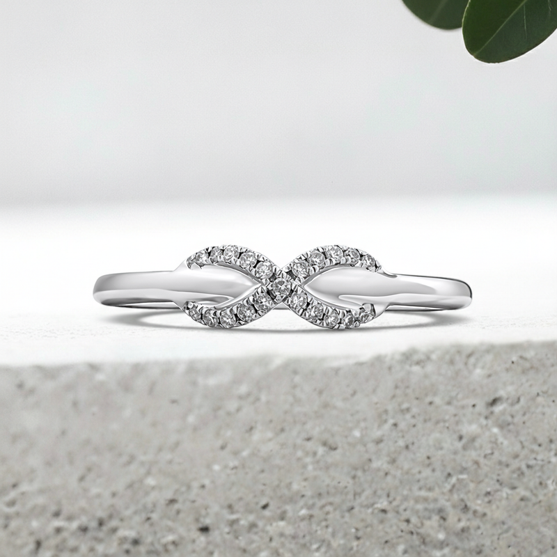 This exquisite piece features an intricately designed infinity knot, symbolizing eternal love and commitment. The knot is beautifully adorned with dazzling, pave-set diamonds, adding a touch of sparkle and sophistication to this stunning piece.