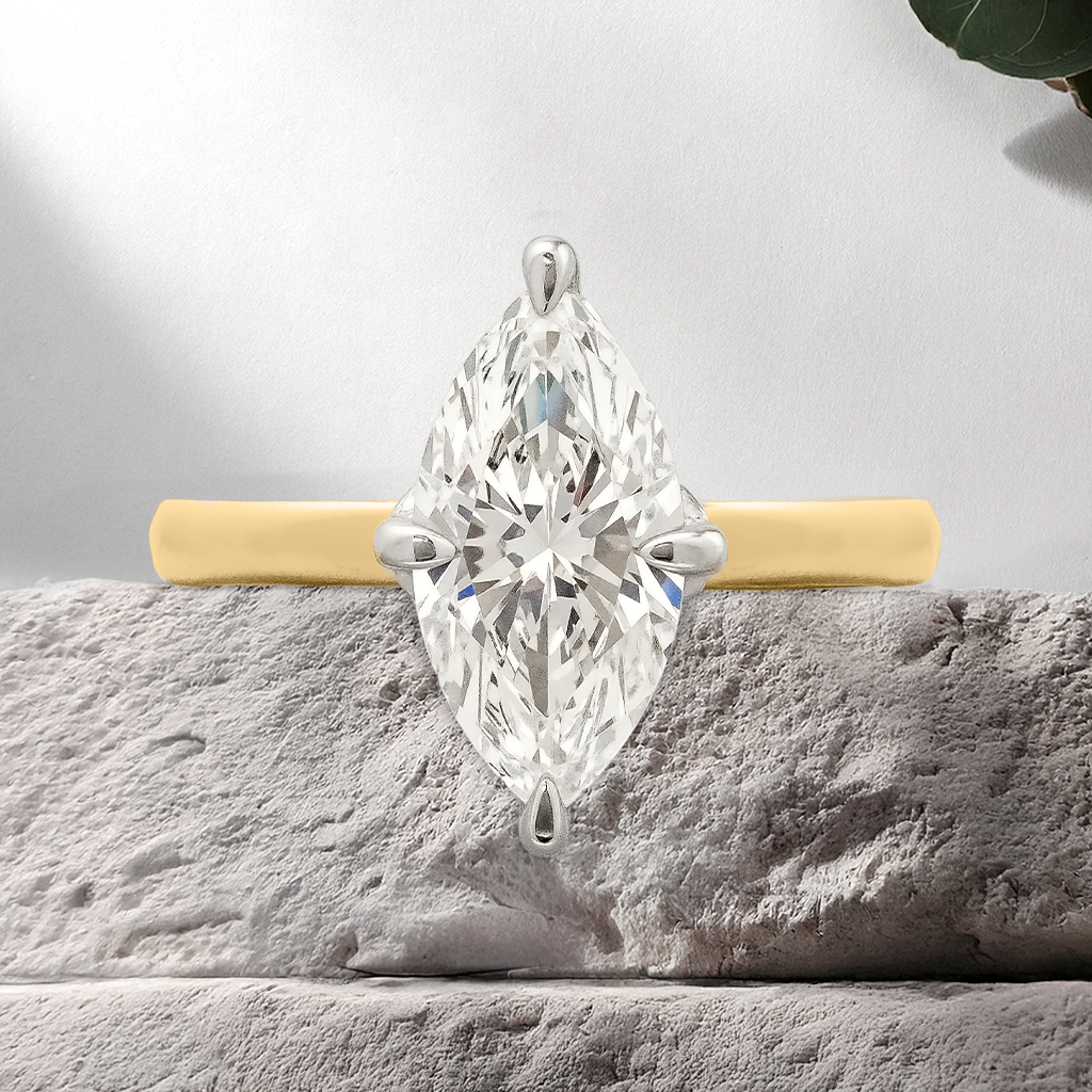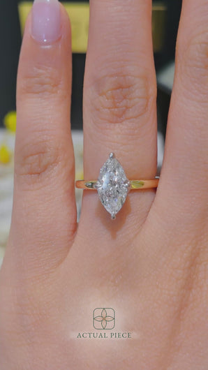 This forever piece features a solitaire and compass setting with four petal-shaped platinum prongs that echo Lucce’s iconic emblem. This marquise cut diamond engagement ring's platinum compass prongs symbolize how, through both good times and challenges, your love always leads you back to each other. The solitaire setting speaks of a love that chooses only her, like a diamond that outshines all others. It is a quiet promise that no matter what life brings, you will always be her unwavering constant.