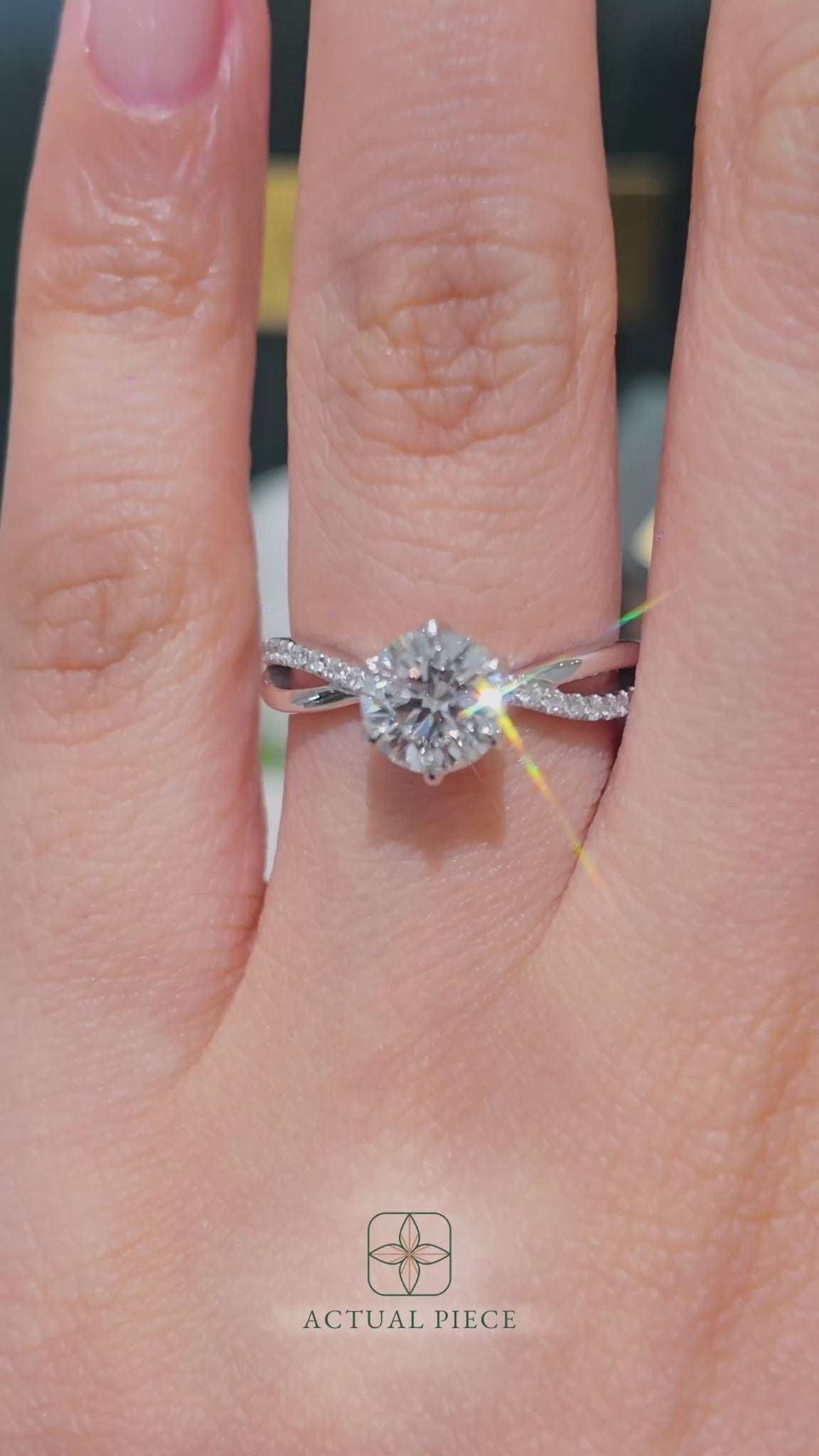 This forever piece features a twisting accented band and Lucce’s signature petal prongs. This round cut diamond engagement ring's twisting band symbolizes two lives intertwined by love, forming an infinity that speaks of a bond that is eternal and unbreakable. It is a promise to stay through all of life’s twists, turns, and everything in between.