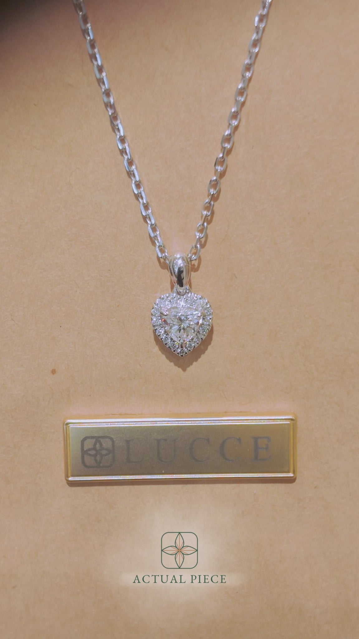 This forever piece features a heart cut diamond pendant with a halo setting. This diamond necklace's timeless design speaks of a love without end, just like the halo itself. And like the halo of an angel, it reflects how she’s brought light into your life, made you better, and inspired you to be the best partner you can be; for her, always.