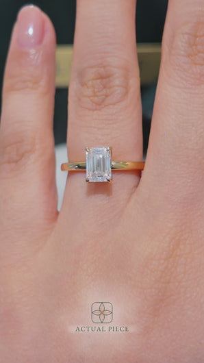 This forever piece features delicate petal prongs and a timeless solitaire band, a design that finds its beauty in simplicity, much like the love you share: quiet, genuine, and deeply content. This emerald cut diamond engagement ring's solitaire band is a symbol of devotion, a reminder that she is the only one your heart desires. Like a tulip in full bloom, she is graceful in her simplicity, yet endlessly captivating.