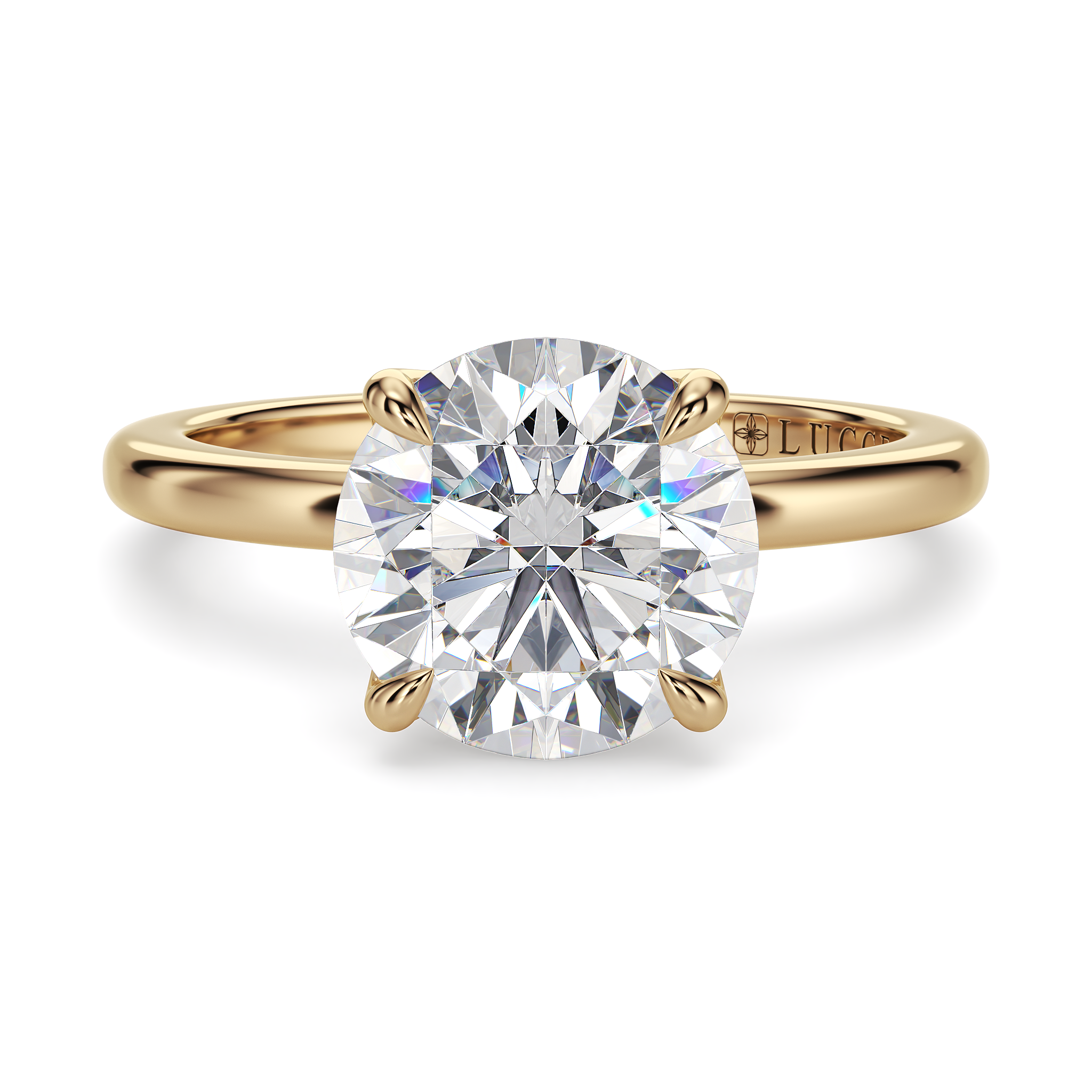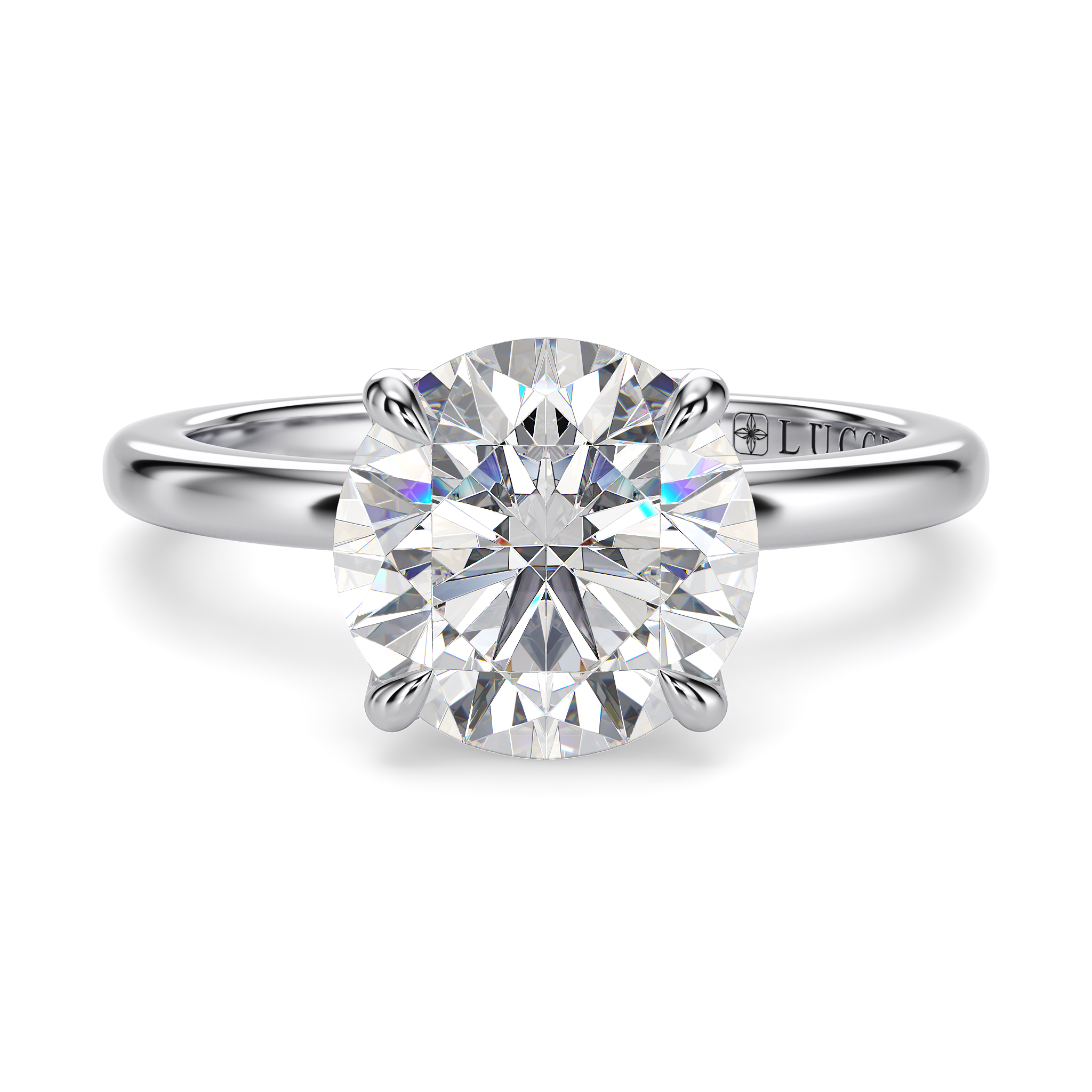 This forever piece features four delicate petal prongs and a timeless solitaire band, a design that finds its beauty in simplicity, much like the love you share: quiet, genuine, and deeply content. This round cut diamond engagement ring's solitaire band is a symbol of devotion, a reminder that she is the only one your heart desires. Like a tulip in full bloom, she is graceful in her simplicity, yet endlessly captivating.