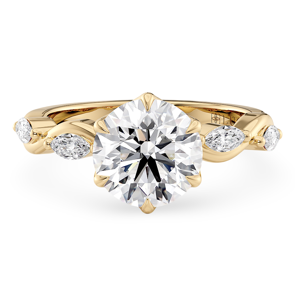 Constance Petal Round Engagement Ring with Lab or Natural Diamond and marquise accents in Gold or Platinum