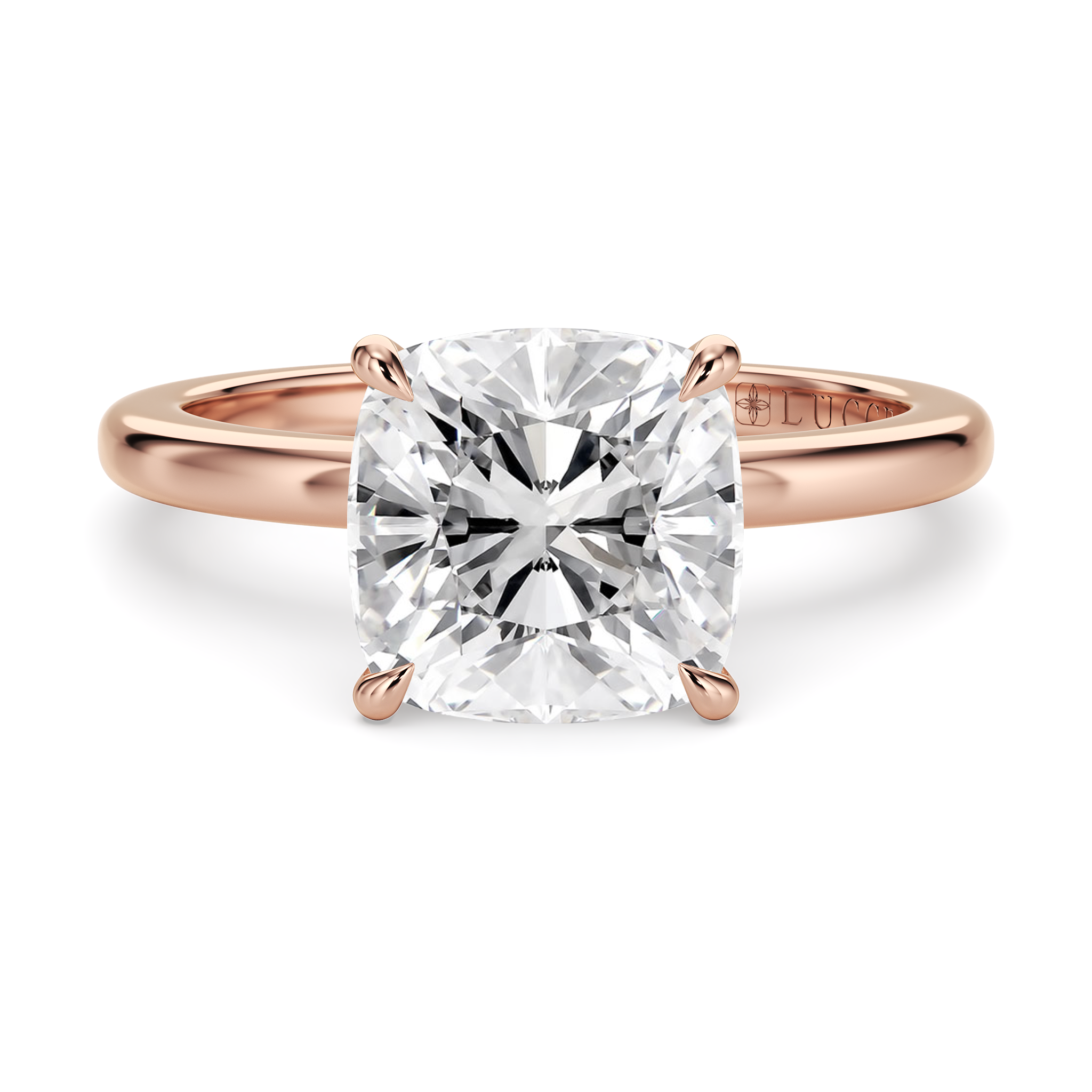 This forever piece features a uniquely wrapped hidden halo and a classic solitaire band. From the top, this cushion cut diamond engagement ring appears simple and elegant, but from another angle, a hidden sparkle is revealed, just like her and the quiet depth of the love you share. The wrapped halo symbolizes your heartfelt promise to keep her safe, embraced in your arms and cherished for all the days to come.